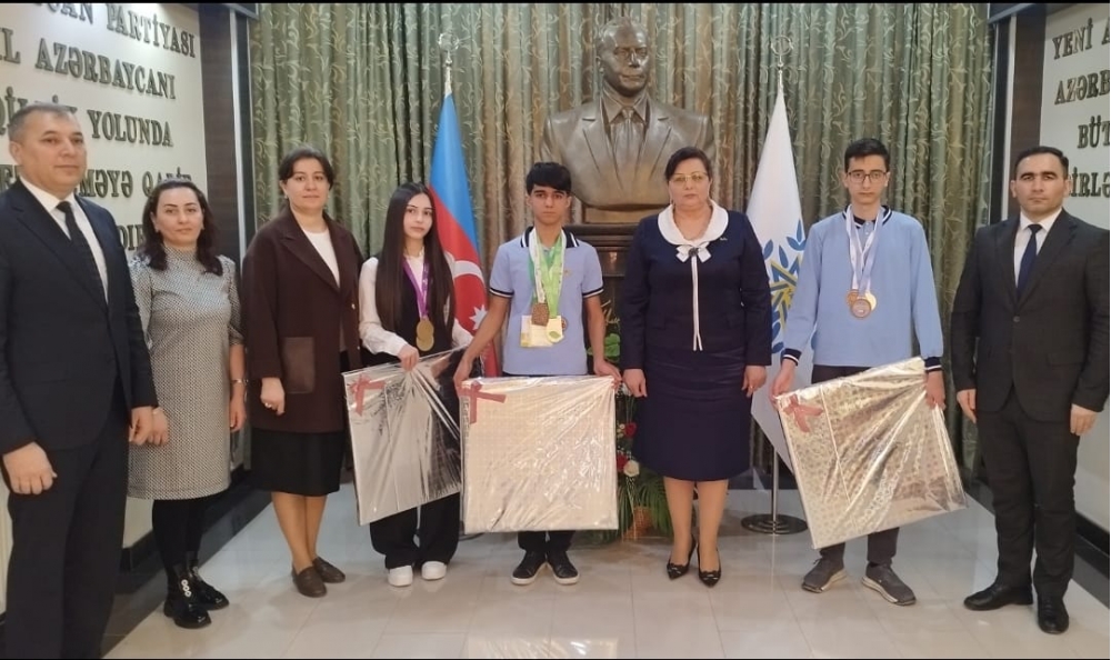Sonda YAP Bərdə rayon təşkilatının sədri Faqət Şadlinskaya medalçı gənclərə uğurlar arzulayıb və onlara təşkilat adından hədiyyələr təqdim edib.