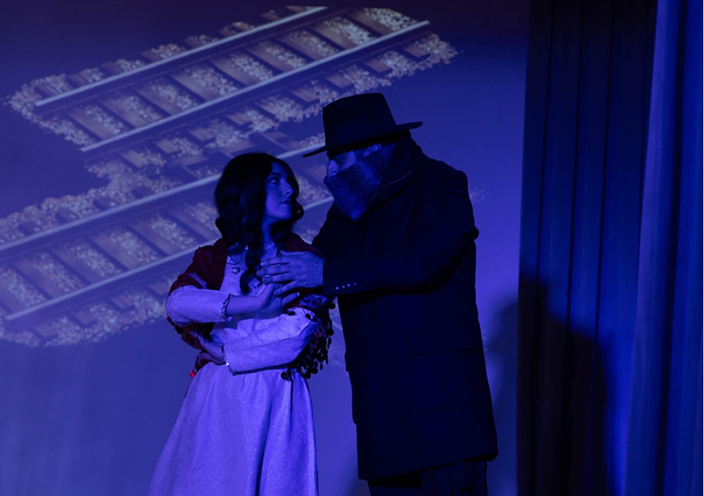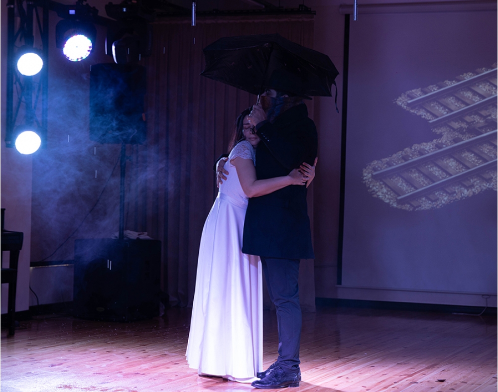 Tamaşada ayrılığın əsas simvolu yarımçıq qalmış qatar yoludur. Qəhrəmanlar son dəfə məhz həmin relslərin üzərində ayrılmışlar. Otuz il ərzində qadın demək olar ki, hər gün həmin istiqamətə gedərək dağıdılmış relslərin önündə dayanır və həyat yoldaşının dönüşünü gözləyir. Lakin yollar dağıdıldığı üçün heç bir qatar gəlmir. Bu məkan həm itkinin, həm də ümidin metaforası kimi təqdim olunur.