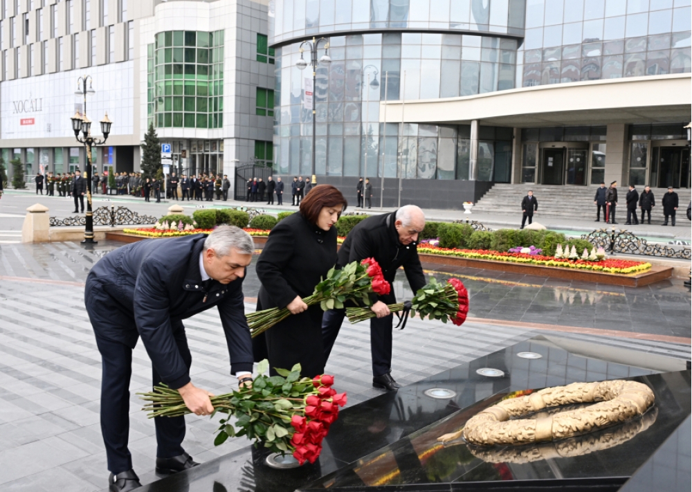 Dövlət və hökumət rəsmiləri Xocalı soyqırımı abidəsini ziyarət ediblər