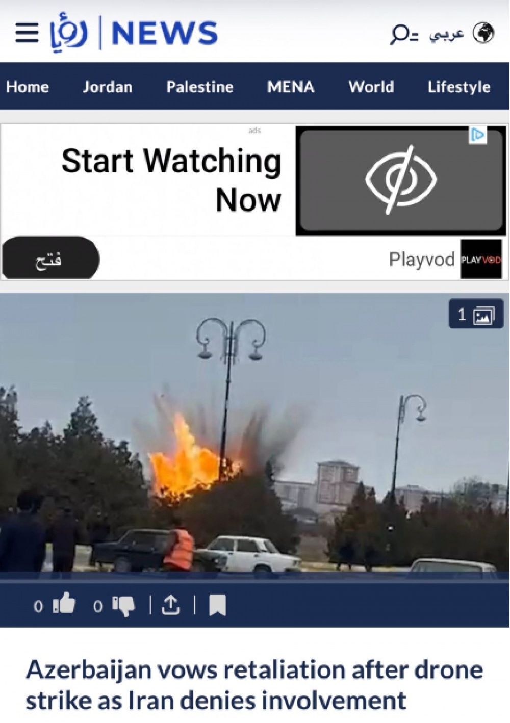“İki sahil” xəbər verir ki, “əl-Məmləkə”, “Royanews.tv”, “Ammon News” və “Jordan News” xəbər portalları dövlət başçısının Azərbaycan ərazisinə qarşı həyata keçirilmiş hücumu qəbuledilməz adlandırdığı, ölkənin suverenliyi və ərazi bütövlüyünün qorunması üçün bütün zəruri tədbirlərin görüləcəyini vurğuladığı qeyd olunub.