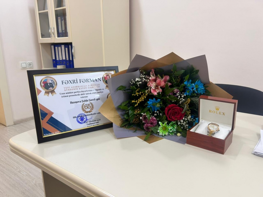 Görüşün sonunda partiya veteranı Şəhla Baxışovaya partiya dəyərlərinin təbliğində və ictimai proseslərdə aktiv iştirakına görə və 65 illik yubileyi münasibətilə Fəxri Fərman, gül buketi və xatirə hədiyyəsi təqdim edilmişdir.