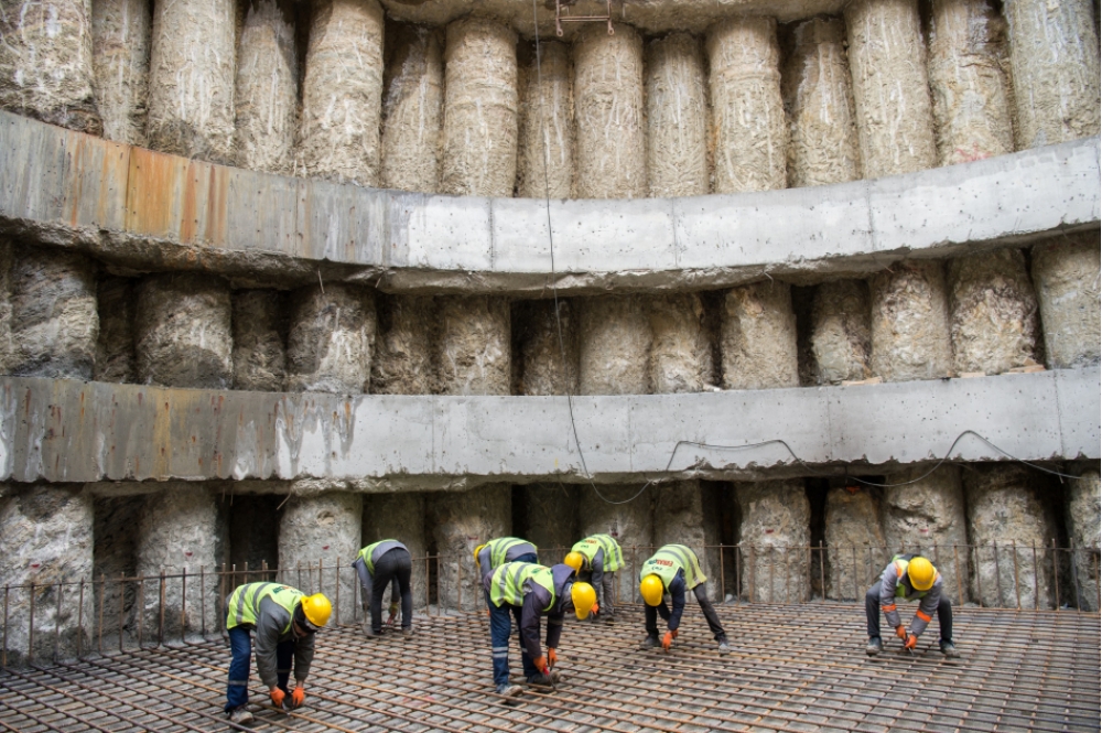 Havalandırma sistemli qum və yağ tutucuda döşəmənin inşası tamamlanıb, divarların dəmir-betonla hörülməsi davam etdirilir.