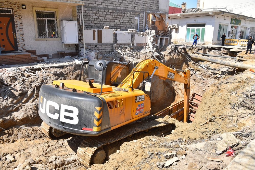 Üzərində tikilən evlər səbəbindən Xətai rayonu, Rəşid Bağırov küçəsində çökən diamertri 1200 mm-lik tullantı su kollektorunun təmir-bərpa işləri davam etdirilir.