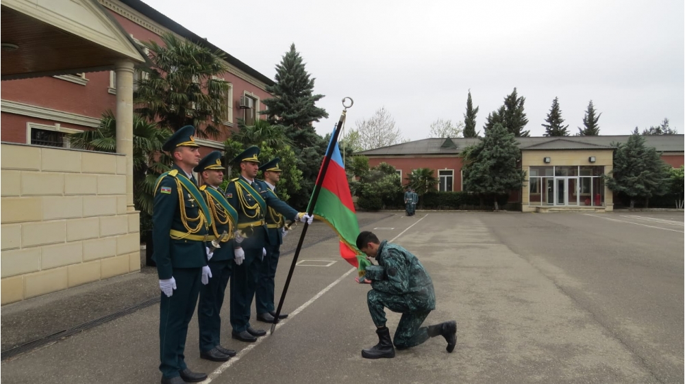 Hərbi qulluqçular üçrəngli bayrağımızı öpüb, xidmət dövründə qazandıqları müsbət vərdiş və keyfiyyətlərə görə minnətdarlıq bildiriblər.