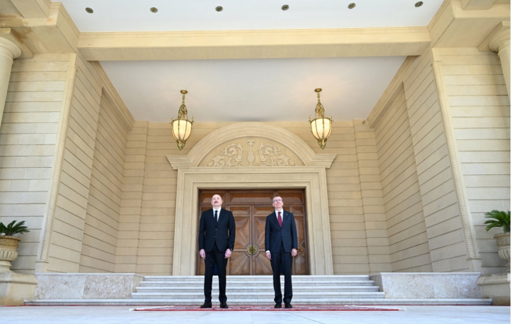 Azərbaycan Prezidenti İlham Əliyev Latviya Prezidenti Edqars Rinkeviçsi qarşıladı.