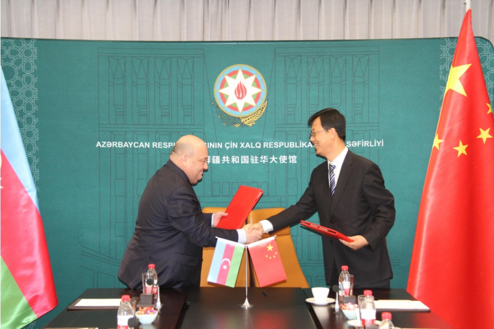 İmzalanma mərasimindən öncə nümayəndə heyəti Azərbaycanın Çindəki səfirliyində Ulu Öndər Heydər Əliyevin büstü önünə gül dəstəsi qoyub, xatirəsini ehtiramla anıb.
