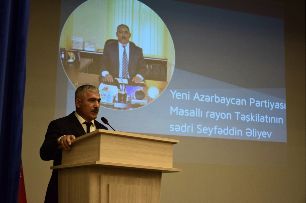 Masallı rayon İcra Hakimiyyətinin başçısı Araz Əhmədov Ulu Öndərin öz mənalı və zəngin ömrünü bütövlükdə millətinə, xalqına, Vətəninə və dövlətinə həsr etdiyini, müqəddəs amallar uğrunda müstəsna fəaliyyət göstərdiyini diqqətə çatdırıb. Qeyd edib ki, məhz Ulu Öndərin gərgin əməyi və qətiyyətli siyasəti sayəsində yeni, müasir Azərbaycan dövləti qurulmuş, ölkəmiz dünya məkanında öz layiqli yerini tutmuşdur. Natiq bildirib ki, dövlətimizin başçısı cənab İlham Əliyev prezidentlik dövründə sadə vətəndaşların, şəhid ailələrinin, müharibə əlillərinin yanında olub, onlara mütəmadi qayğı və diqqət göstərib. Məhz bunun nəticəsidir ki, ümumxalq məhəbbətini qazanan cənab İlham Əliyev xalqın bütün təbəqələri tərəfindən sevilməkdədir.