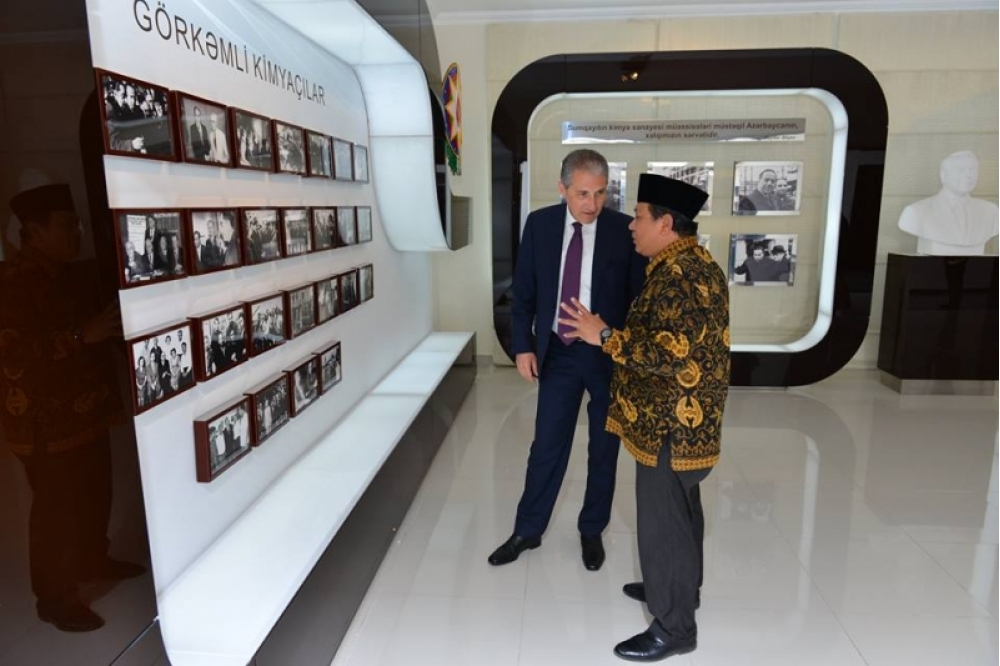 Qonağı səmimi salamlayan, İndoneziyanın Azərbaycan üçün siyasi tərəfdaş və dost ölkə olduğunu, iki olkə arasında uzunmüddətli səmərəli əməkdaşlığın, dini, elmi və mədəni əlaqələrin mövcudluğunu vurğulayan “Azərikimya” İstehsalat Birliyinin Müşahidə Şurasının sədri, Milli Məclisin deputatı Muxtar Babayev Azərbaycan neft-kimya sənayesinin inkişaf mərhələləri, “Azərikimya”nın istehsalat sahələrində aparılan yenidənqurma və modernizasiya işləri, perspektiv layihələr, həmçinin son dövrlərdə Sumqayıt şəhərində həyata keçirilən abadlıq və quruculuq işləri haqqında məlumat verib.