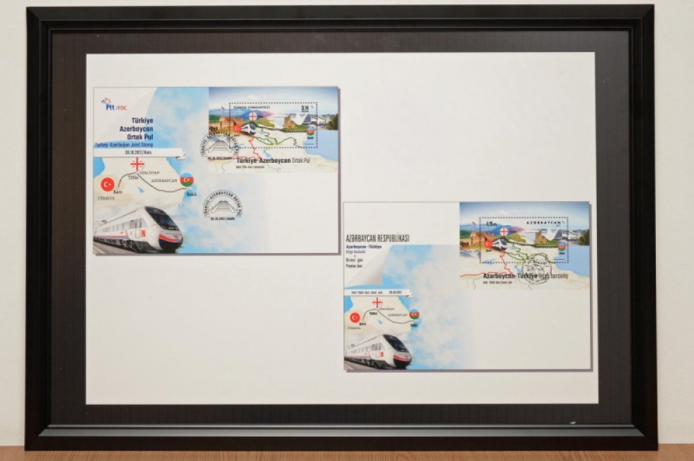 Sonra Bakı-Tbilisi-Qars dəmiryolu xəttinin açılışına həsr olunmuş marka imzalanıb və auditoriyaya təqdim olunub. Bununla da birgə istehsal olunan marka poçt dövriyyəsinə buraxılıb.