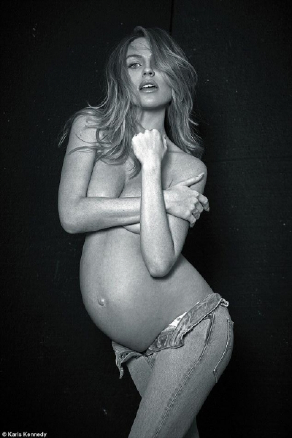 Milli.Az TMZ-yə istinadən bildirir ki, 31 yaşlı model kamera qarşısına keçərək "Hamiləliyin gözəlliyi" adlı fotosessiyanı reallaşdırıb. Modelin dediyinə görə, futbolçu əri Piter Krauç fotoları çox bəyənib.
