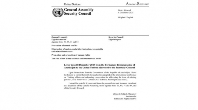 Bakı Bəyannaməsi BMT-nin rəsmi sənədi kimi dərc olunub
