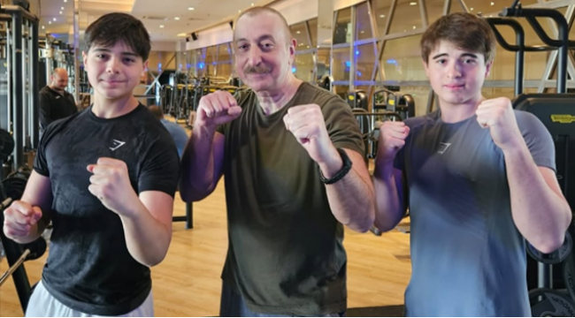 Prezident nəvələri ilə idman zalında -