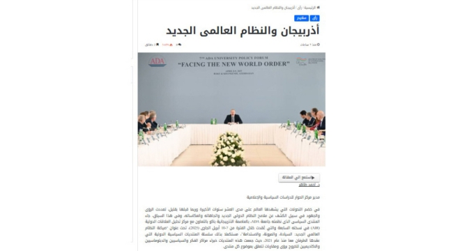 Misirli tədqiqatçı: ADA forumu yeni beynəlxalq sistemin konturlarını və təsirlərini anlamaq üçün mühümdür