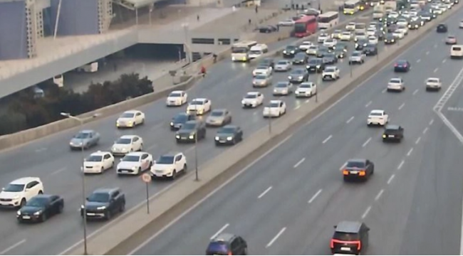 Bakının bir sıra yollarında nəqliyyatın sıxlığı müşahidə edilir