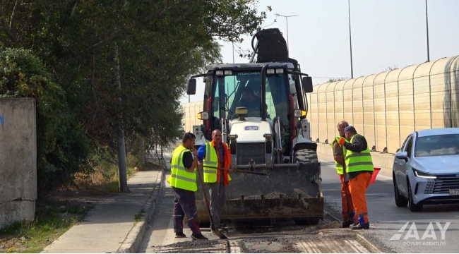 Bakı Dairəvi yolunun köməkçi hissəsində təmir işləri aparılır -