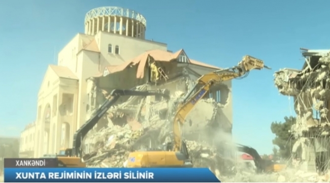 Xankəndidə separatçıların “parlament binası” sökülür -