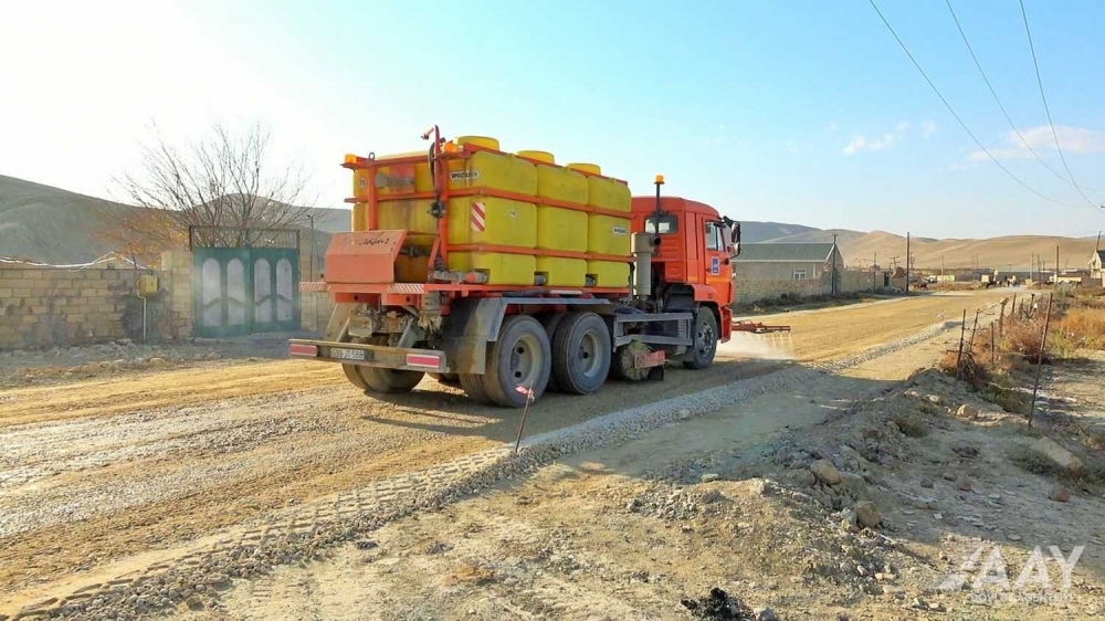 Torpaq işləri yekunlaşdıqdan sonra “İnşaat Norma və Qaydaları”nın tələblərinə əsasən yolun asfaltlanması işlərinə start verilib, əlaqələndirici bitum səpilməklə yola alt və üst lay olmaqla yeni asfalt-beton örtüyü döşənir. Bunun üçün əraziyə lazımi sayda canlı qüvvə və texnika cəlb edilib.