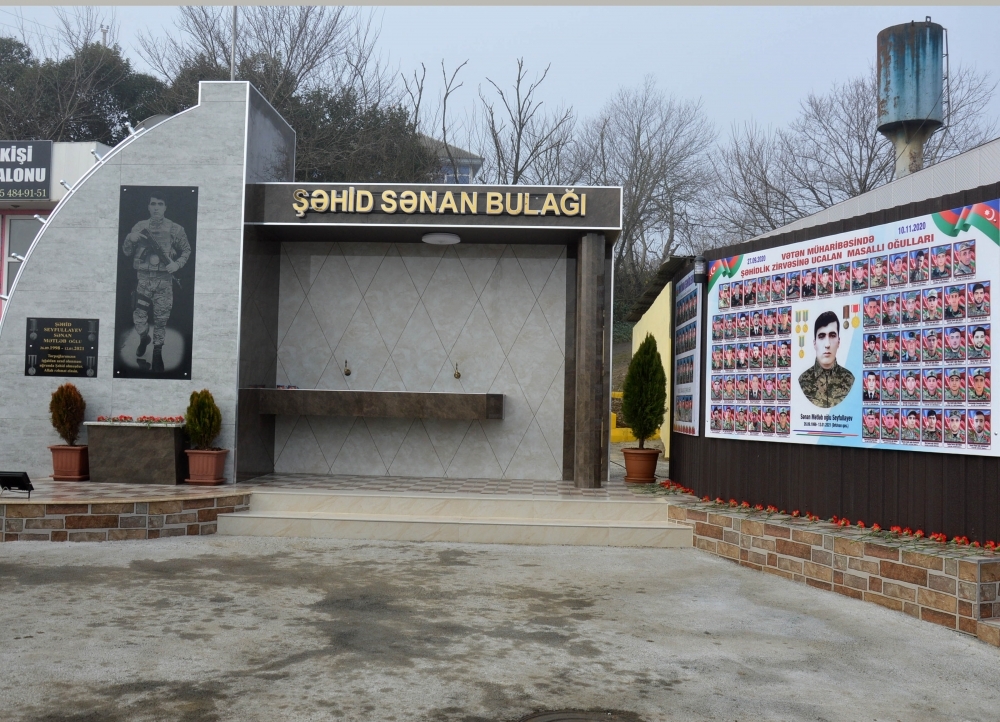 Qəsəbənin girişində şəhid Sənan Seyfullayevin şərəfinə bulaq inşa edilib.