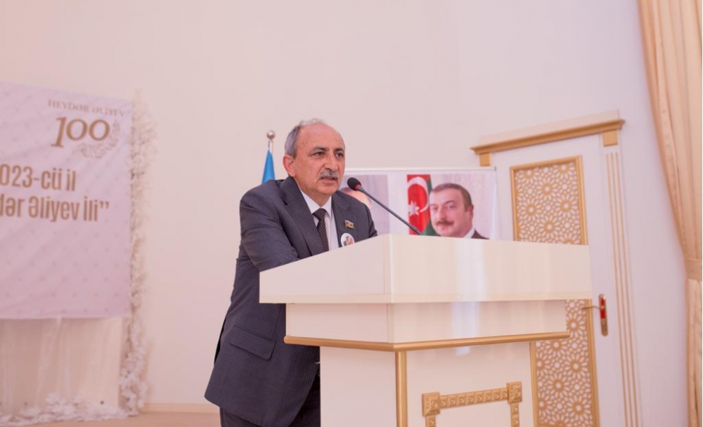 Sonra Qərbi Azərbaycan İcmasının İdarə Heyətinin sədri, Milli Məclisin deputatı Əziz Ələkbərli çıxış edərək Qərbi Azərbaycan məsələsinə Ulu Öndər Heydər Əliyevin həssas münasibətini vurğulayıb. Heydər Əliyevin torpaqlarımızın azad olunması, qayıdış məsələlərinin həlli ilə bağlı atdığı gələcəyə hesablanmış addımlar, qəbul etdiyi müdrik qərarlar barədə danışıb. Qeyd edib ki, Heydər Əliyevin Qərbi Azərbaycan məsələsi ilə bağlı tutduğu mövqe, əsasını qoyduğu siyasət Azərbaycan Respublikasının Prezidenti tərəfindən layiqincə və uğurla davam etdirilir.