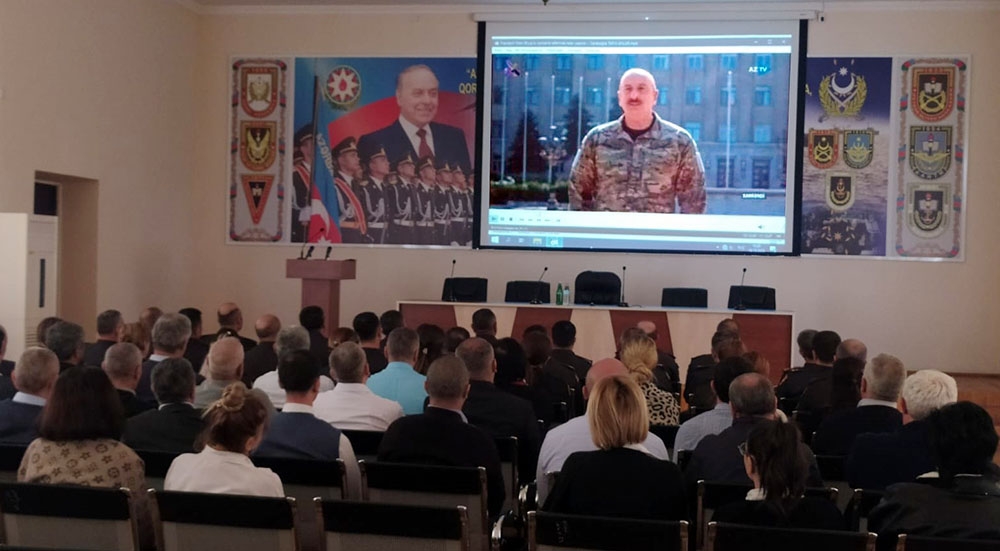 Çıxış edənlər Ulu Öndər Heydər Əliyevin xalqımızın taleyində, müasir Azərbaycan dövlətinin qurulmasında və inkişafında müstəsna xidmətlərindən, Ümummilli Liderin Azərbaycana rəhbərliyi dövründə respublikamızın ictimai-siyasi, iqtisadi, sosial həyatında, eləcə də ordu quruculuğunda əldə olunan nailiyyətlərdən danışıblar. Onun müdrik siyasətini uğurla davam etdirən Azərbaycan Respublikasının Prezidenti, Silahlı Qüvvələrin Ali Baş Komandanı cənab İlham Əliyevin sayəsində ölkəmizin durmadan inkişaf etdiyi xüsusi vurğulanıb.