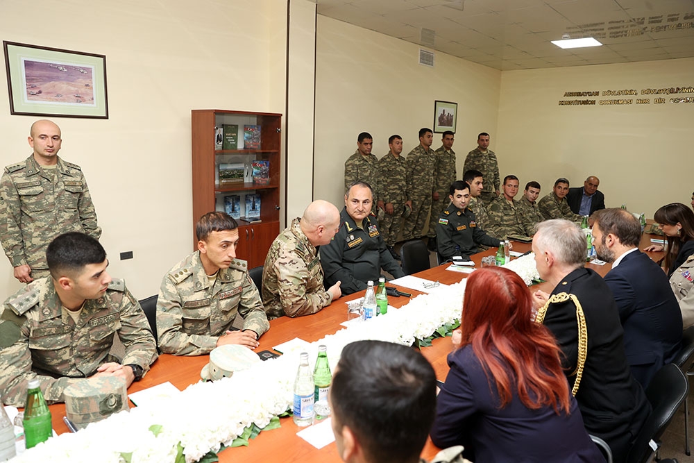 Sonra qonaqlar "N" hərbi hissəsini ziyarət ediblər. Nümayəndə heyətinə hərbi hissənin yaranma tarixi və əsas fəaliyyət istiqamətlərinə dair brifinq təqdim olunub, videoçarx nümayiş etdirilib.