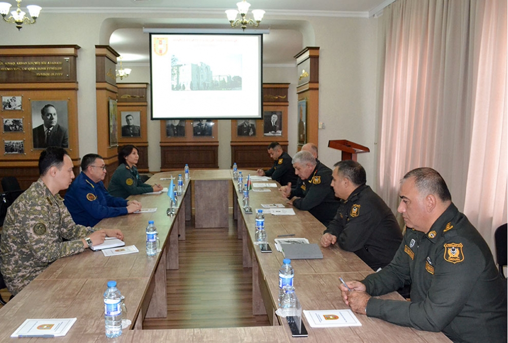 Qazaxıstan nümayəndə heyətinə Milli Müdafiə Universitetinin tarixi, strukturu və təhsil səviyyəsinin təşkili haqqında brifinq təqdim olunub.