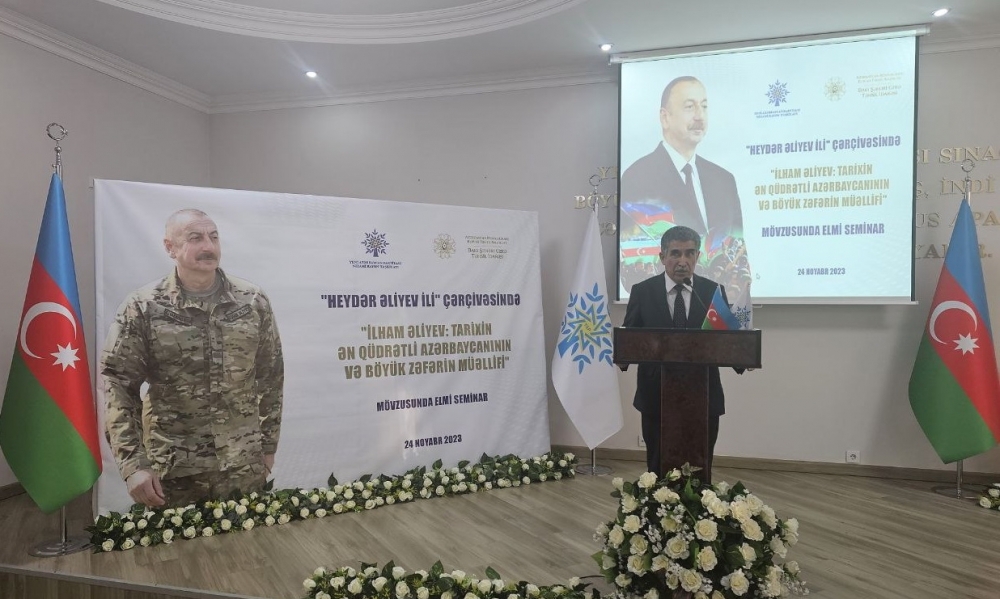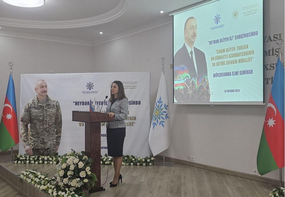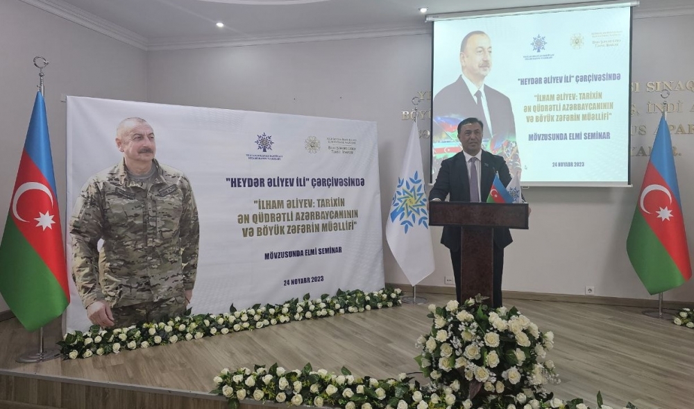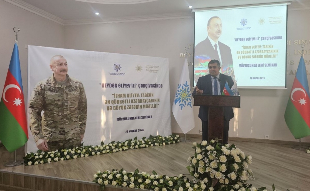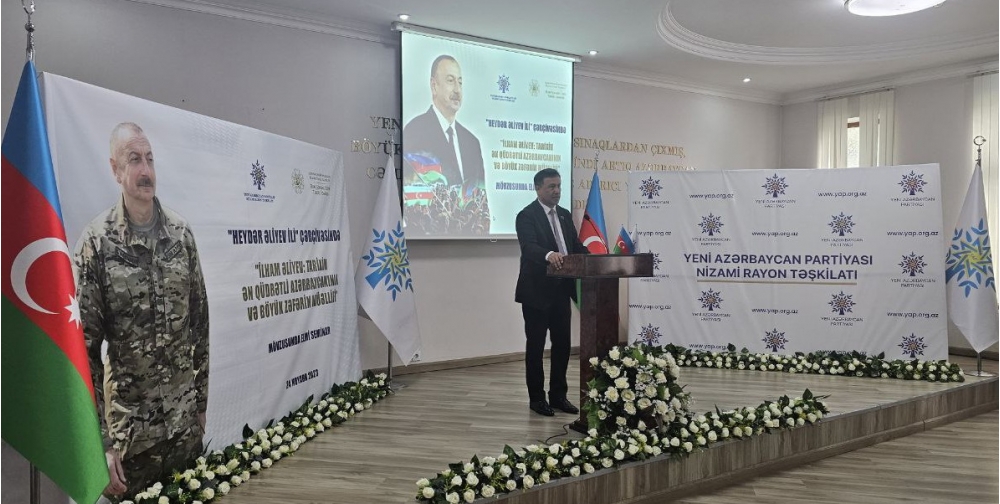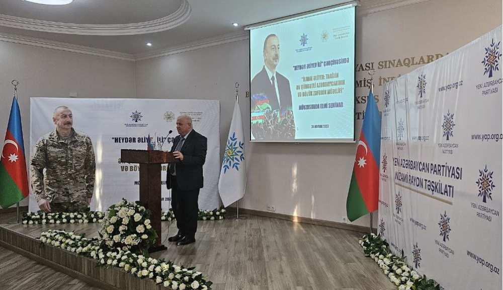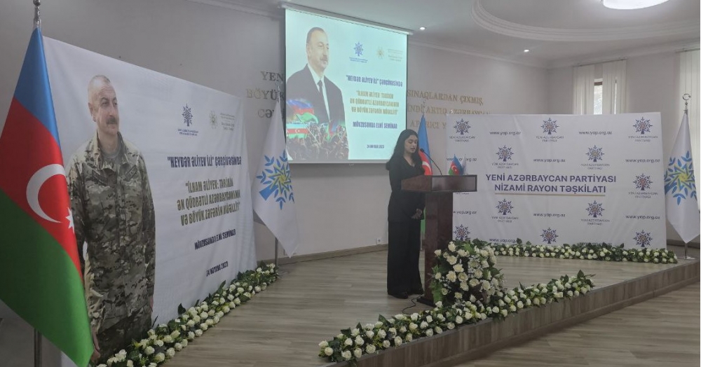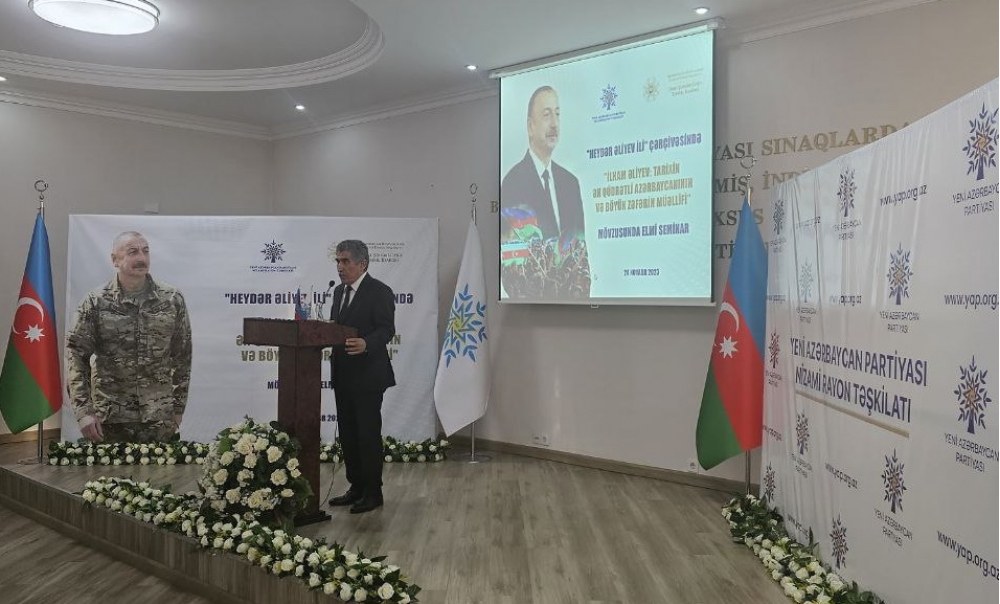Nizami rayonunda “Heydər Əliyev ili” çərçivəsində Azərbaycan Respublikası Elm və Təhsil Nazirliyi Bakı Şəhəri üzrə Təhsil İdarəsi və Yeni Azərbaycan Partiyası Nizami rayon təşkilatının birgə təşkil etdiyi “İlham Əliyev: Tarixin ən qüdrətli Azərbaycanının və böyük zəfərin müəllifi” mövzusunda elmi seminar keçirilib.