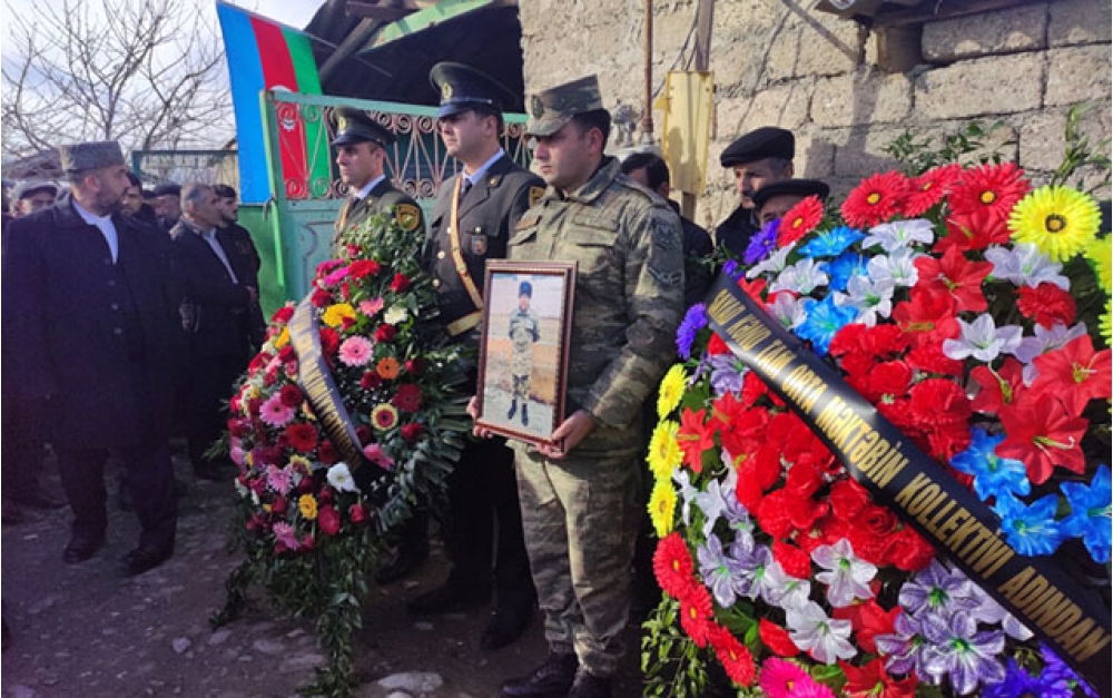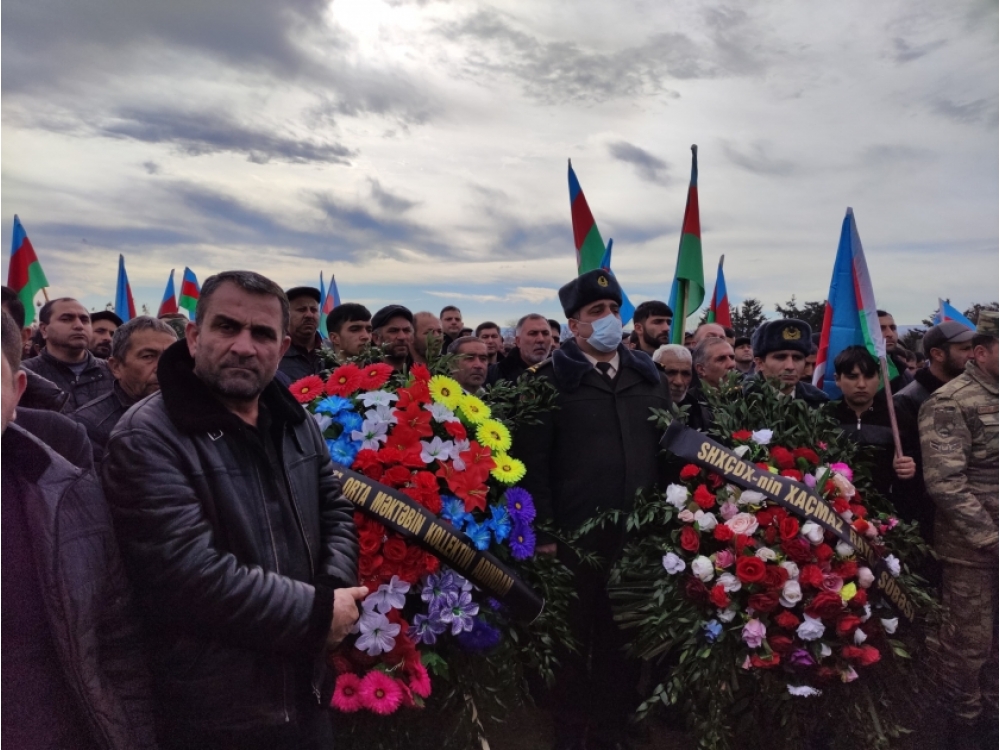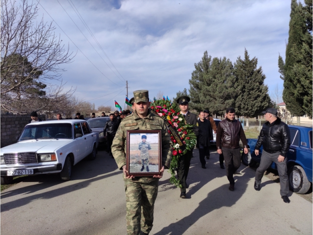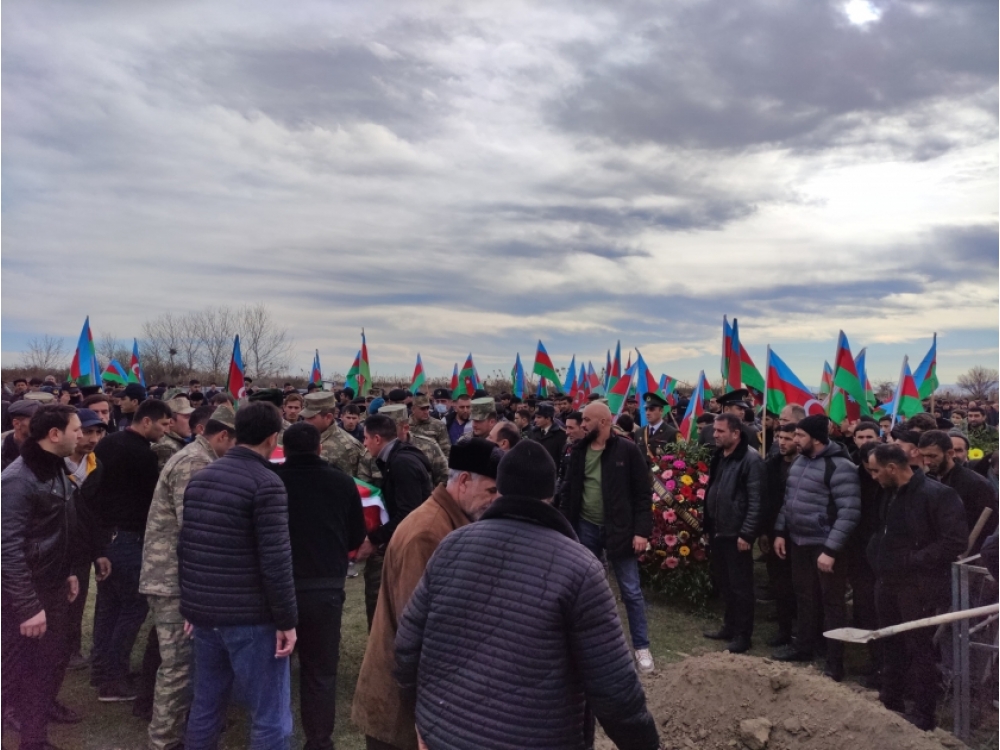 Kənd qəbiristanlığında torpağa tapşırılan şəhidin məzarı üstünə əklil və gül dəstələri qoyulub. Tabut üzərinə çəkilmiş üçrəngli Azərbaycan Bayrağı şəhidin atasına təqdim edilib.