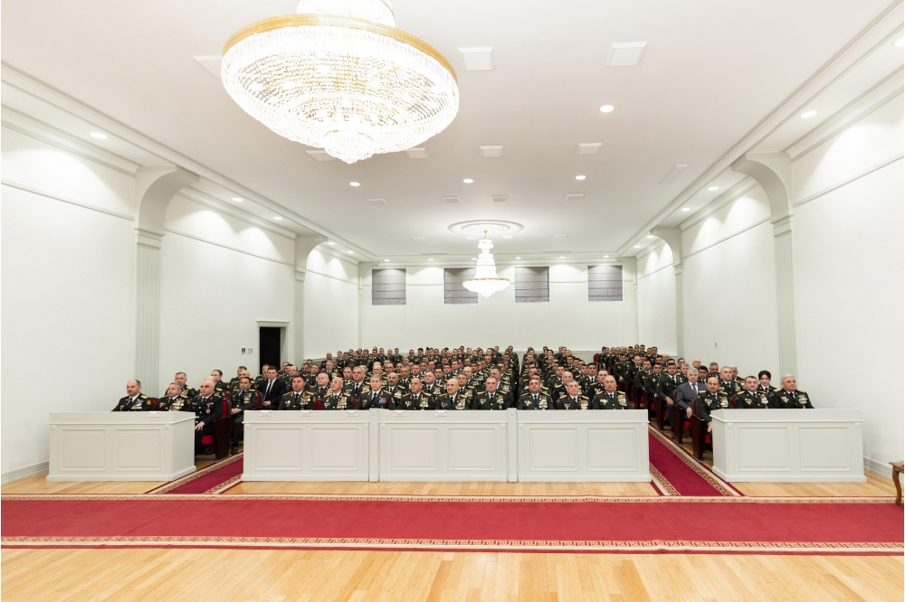 Əvvəlcə Ulu Öndər Heydər Əliyevin və ölkəmizin suverenliyi, ərazi bütövlüyü uğrunda həlak olmuş hərbi qulluqçuların, eləcə də bütün şəhidlərin əziz xatirəsi bir dəqiqəlik sükutla yad olunub.