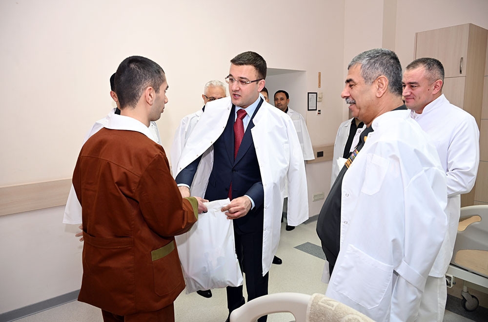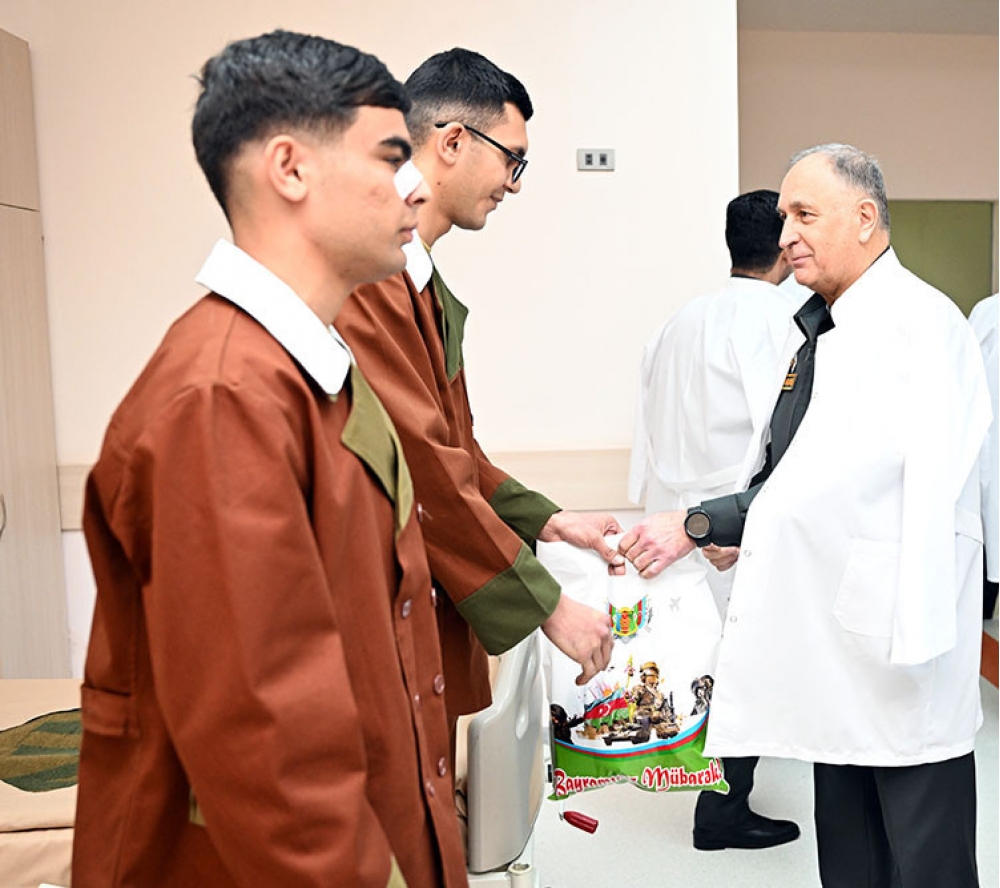 Nazirliyin rəhbər heyəti hospitalda müalicə olunan hərbi qulluqçulara baş çəkib, onların səhhəti ilə maraqlanaraq bayram hədiyyələri təqdim edib, ən qısa müddətdə sağlamlıqlarını bərpa edərək xidmət yerlərinə qayıtmalarını arzulayıb.