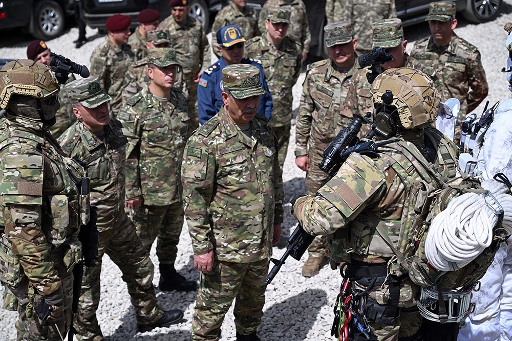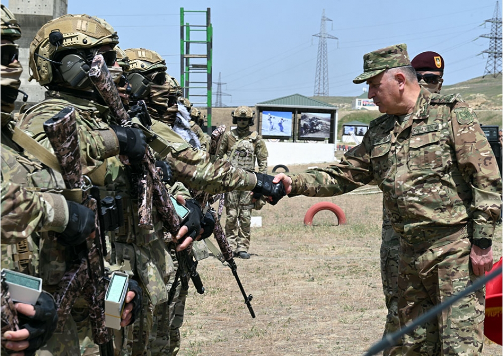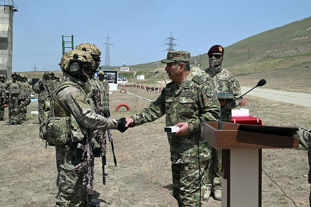 Sonra təlim meydanında xüsusi təyinatlıların istifadəsində olan müasir silah və texnikaya baxış keçirilib. Nazirliyin rəhbər heyəti komanda müşahidə məntəqəsinə gələrək xüsusi təyinatlıların nümayiş dərslərini izləyib. Daha sonra Müdafiə Nazirliyinin rəhbərliyi şəxsi heyət qarşısında çıxış edib. Xüsusi təyinatlıların Vətən müharibəsində və digər əməliyyatlarda göstərdiyi şücaət və qəhrəmanlıqların Azərbaycan Respublikasının Prezidenti, Silahlı Qüvvələrin Ali Baş Komandanı cənab İlham Əliyev tərəfindən yüksək qiymətləndirildiyi qeyd olunub.