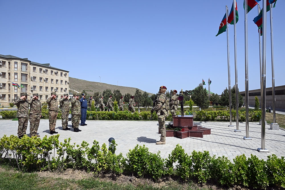 Əvvəlcə Ümummilli Lider Heydər Əliyevin hərbi hissənin ərazisindəki büstü və şəhidlərimizin xatirəsinə ucaldılmış abidə önünə gül dəstələri düzülüb.