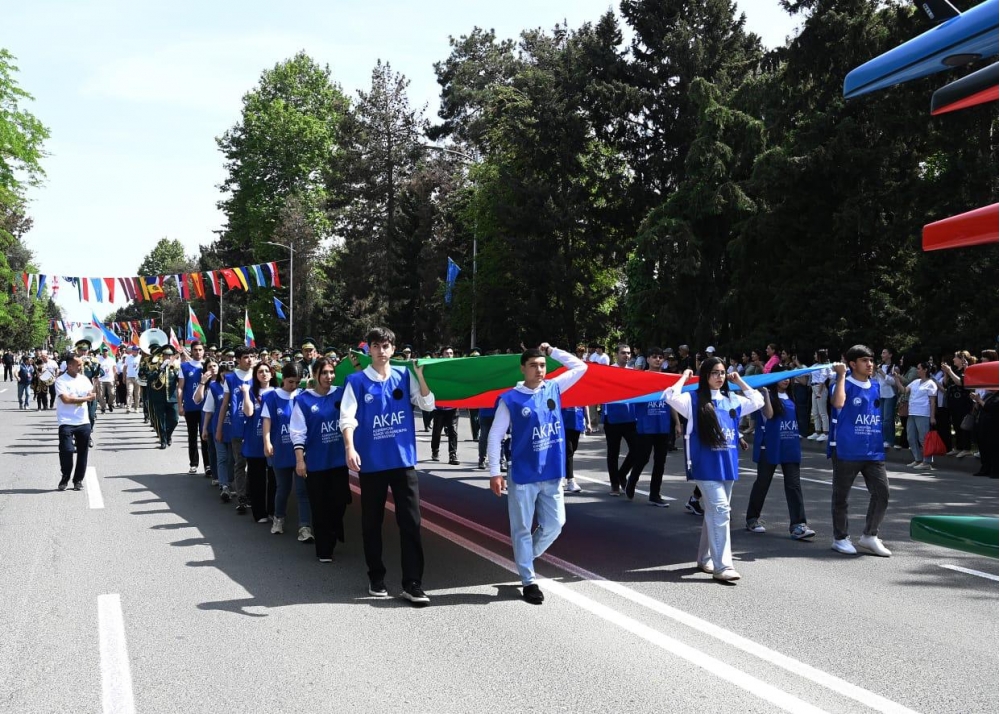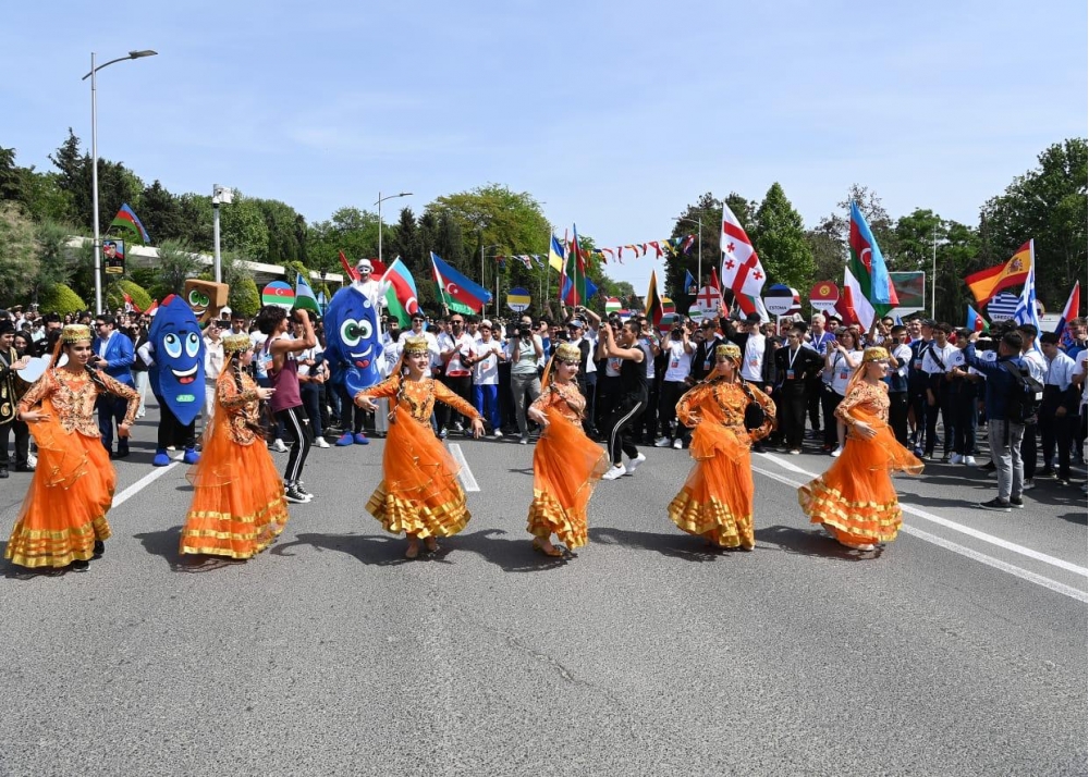 “İki sahil” xəbər verir ki,  idmançıların keçidindən sonra Azərbaycan Respublikasının Dövlət Himni səsləndirilib.  Ardınca rəsmi şəxslər Ulu Öndər Heydər Əliyevin Mingəçevirdə yerləşən abidəsini ziyarət edib, abidə önünə gül dəstələri düzüblər. Tədbir rəqs qrupunun və idmançıların maraqlı rəqsləri ilə davam edib.