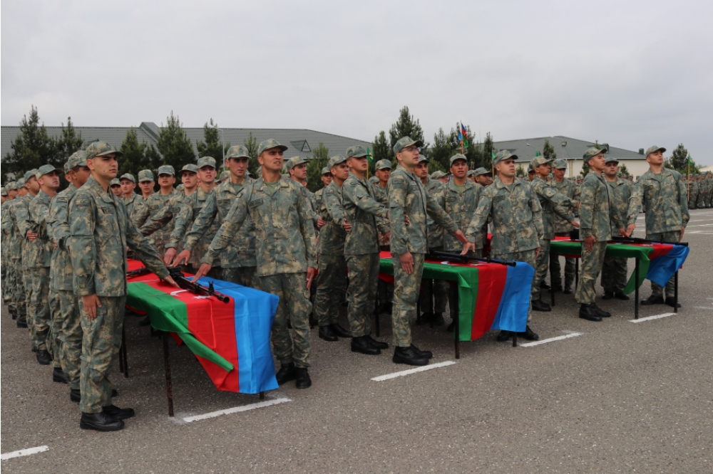 Eyni zamanda, xidmətə yeni başlayan hərbi qulluqçuların andiçmə mərasimi keçirilib.