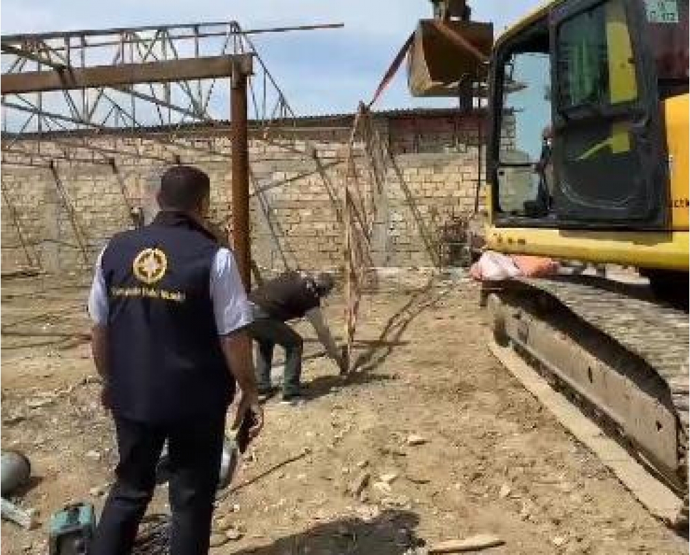 FHN-in Tikintidə Təhlükəsizliyə Nəzarət Dövlət Agentliyi tərəfindən Dövlət Şəhərsalma və Arxitektura Komitəsi, müvafiq olaraq Abşeron və Qaradağ Rayon İcra hakimiyyətləri nümayəndələrinin iştirakı ilə həyata keçirilən tədbirlər nəticəsində qanunsuz tikilən obyektlər sökülüb.