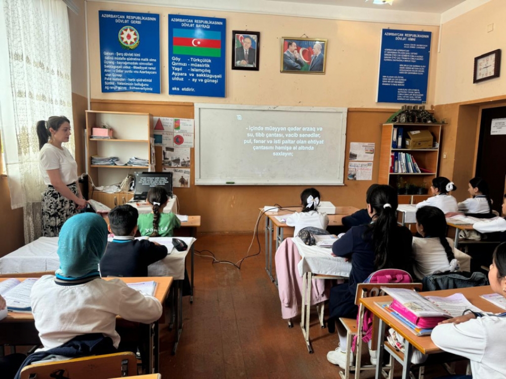 Məşqin nəzəri hissəsində məktəb kollektivinə mülki müdafiənin əsas prinsipləri, fovqəladə hallar və bununla bağlı davranış qaydaları barədə ətraflı məlumat verilib.