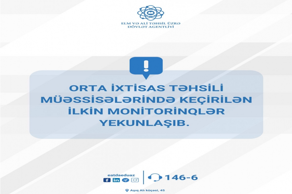 Orta ixtisas təhsili müəssisələrində keçirilən ilkin monitorinqlər yekunlaşıb.
