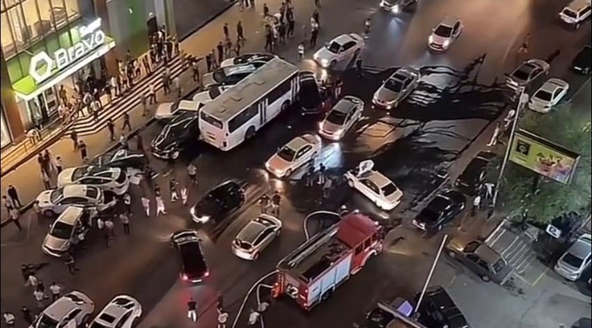 Nəticədə 10-dan çox avtomobilə ziyan dəyib. Əraziyə Dövlət Yol Polisi əməkdaşları, Fövqəladə Hallar Nazirliyinin yanğınsöndürənləri və təcili yardım briqadası cəlb olunub.