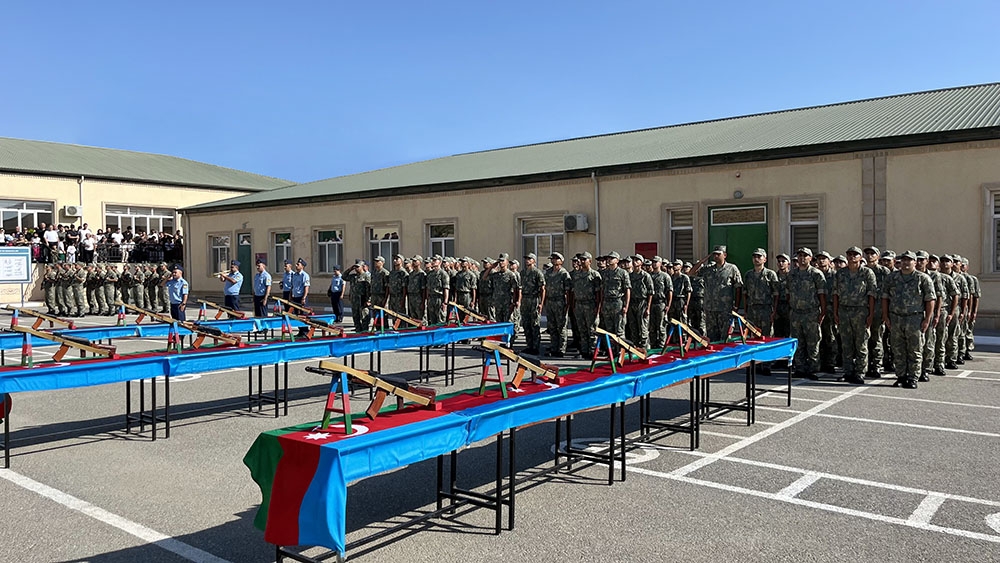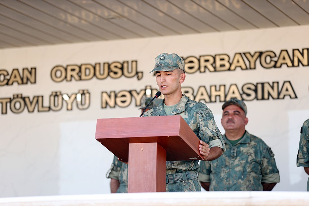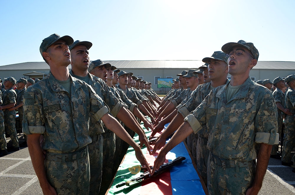 Sonda gənc əsgərlər təntənəli surətdə Hərbi andı qəbul edərək Vətənə sadiq olacaqlarına söz veriblər.
