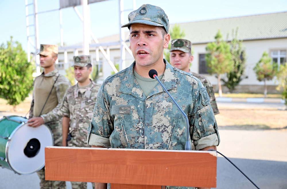 Müdafiə Nazirliyinin nümayəndələri və hərbi hissə komandanlıqları çıxış edərək gənc əsgərləri Hərbi andı qəbul etmələri münasibətilə təbrik edib, onlara Vətənə, dövlətə və Ali Baş Komandana, hərbi anda sadiq olmalarını, nümunəvi, nizam-intizamlı xidmət etməyi, silah və texnikanın sirlərini dərindən öyrənərək döyüş qabiliyyətlərini daim artırmalarını, komandir-rəis heyətinin əmr və sərəncamlarını dəqiq və vaxtında yerinə yetirmələrini, torpaqlarımızın müdafiəsi naminə döyüşə hər an hazır olmalarını tövsiyə ediblər.