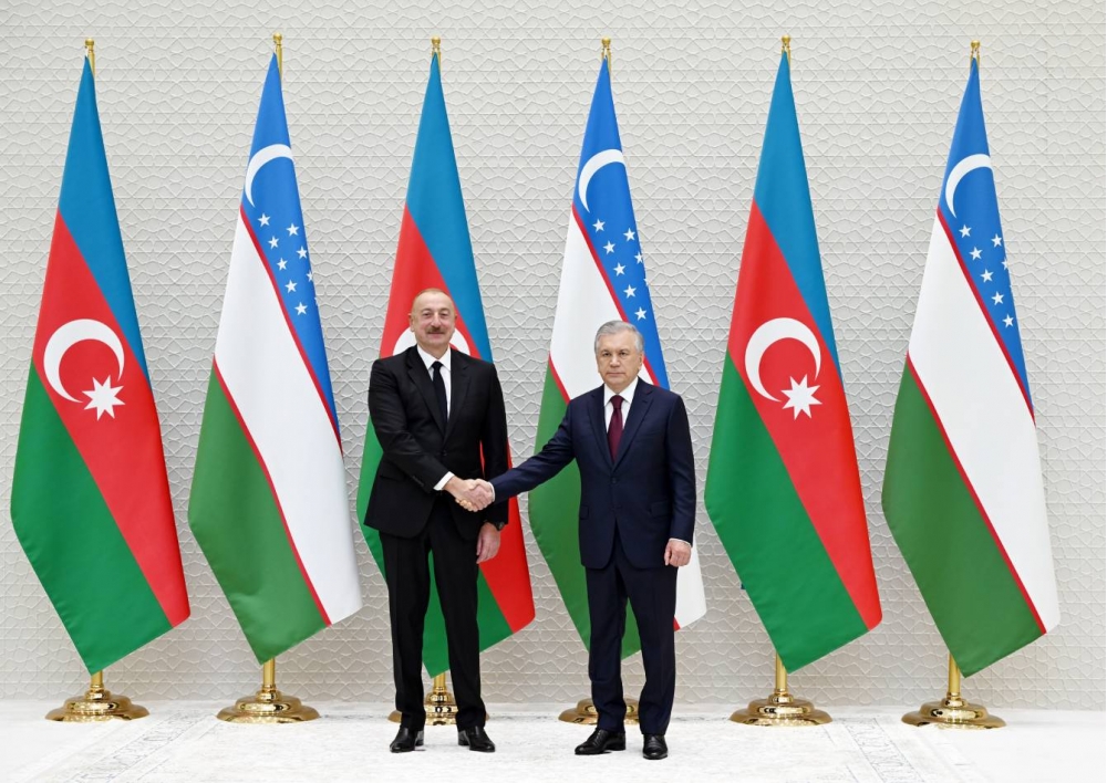 Prezident İlham Əliyevi və birinci xanım Mehriban Əliyevanı Özbəkistan Prezidenti Şavkat Mirziyoyev və xanımı Ziroatxon Mirziyoyeva qarşıladılar.