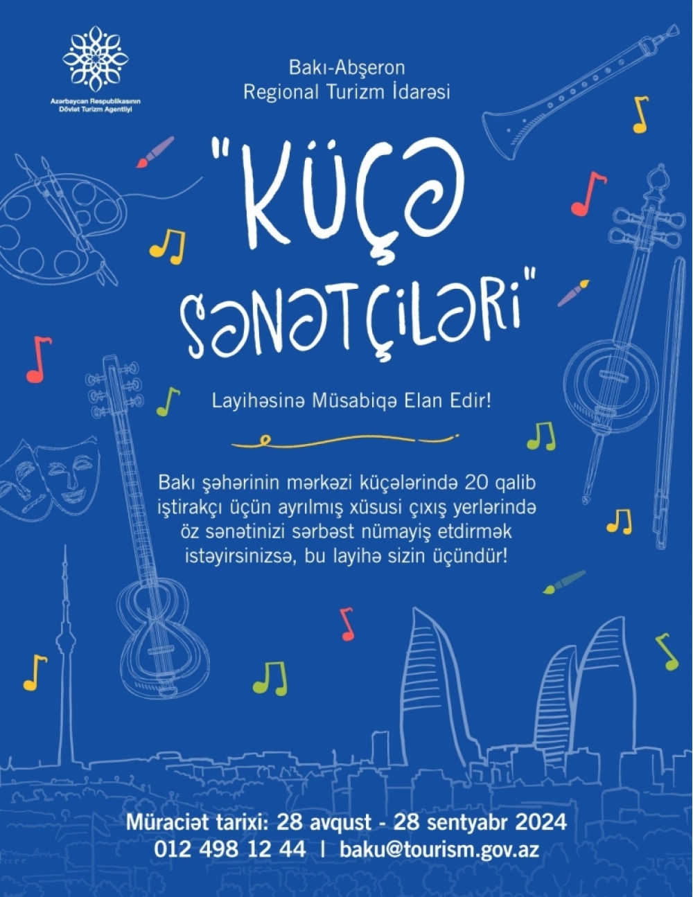 Dövlət Turizm Agentliyinin Bakı-Abşeron Regional Turizm İdarəsi "Küçə sənətçiləri" layihəsində iştirak etmək üçün müsabiqə elan edir.
