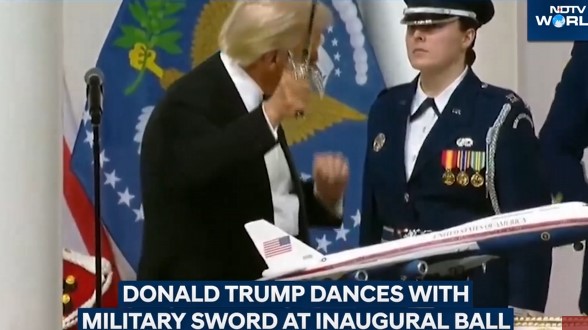 Tramp ilk qatıldığı ziyafətdə səhnədə qılıncla rəqs etməyə başlayıb.