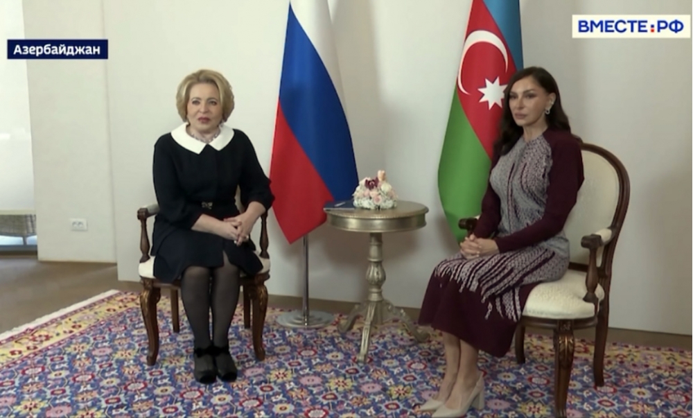 Telereportajda vurğulanır ki, V.Matviyenko və Azərbaycanın Birinci vitse-prezidenti Mehriban Əliyeva arasında görüş keçirilib. Danışıqlar zamanı tərəflər iki ölkə arasında humanitar əməkdaşlıq məsələlərini müzakirə ediblər.