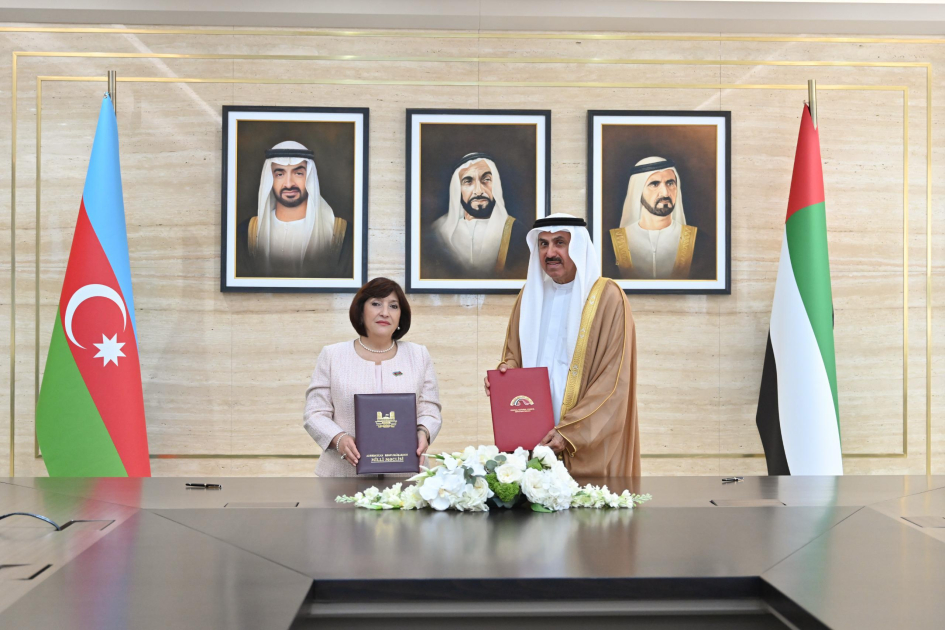 “İki sahil” xəbər verir ki, Parlamentin Mətbuat və ictimaiyyətlə əlaqələr şöbəsindən bildirilib ki, Azərbaycan Respublikası Milli Məclisi ilə Birləşmiş Ərəb Əmirlikləri Federal Milli Şurası arasında Anlaşma Memorandumunu iki ölkənin parlament sədrləri Sahibə Qafarova və Saqr Qobaş imzalayıblar.