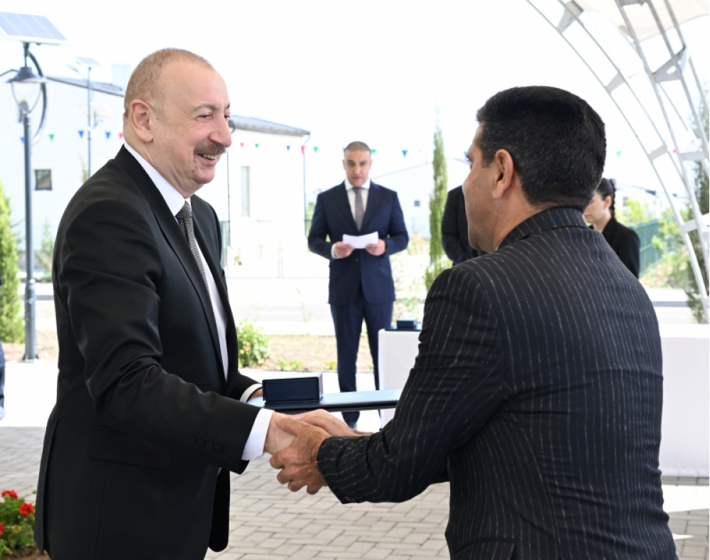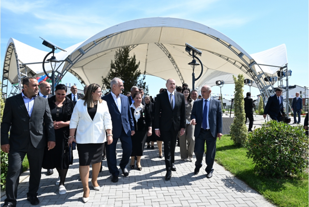 Bütün bu əzablı illər arxada qaldı. Siz indi öz doğma torpağınıza qayıdırsınız və qayıtmısınız, sizin üçün gözəl şərait yaradılıb. Kəngərli kəndi göz oxşayır. Kəndin bərpasının, yenidən qurulmasının birinci mərhələsidir, 292 ev hazırdır, sizin ixtiyarınıza verilir. İkinci mərhələdə daha çox evlər tikiləcək. Hər cür şərait var. Gözəl evlər, işıq, qaz, su, kanalizasiya sistemləri, məktəb, uşaq bağçası, market, tibb məntəqəsi, hətta bazar kompleksi - hər şey var. Əkin üçün yerlər ayrılacaq. İndi bəzi torpaqlarda artıq minatəmizləmə işləri başa çatıb. Mən göstəriş vermişəm, sakinlərə torpaq sahələri də veriləcək. Həyətyanı sahə də 12 sotdur. Orada da əkib-becərmək mümkündür. Yəni, həyat qayıdır, ədalət zəfər çalıb, ədalətin təntənəsidir. Biz bunun şahidiyik.