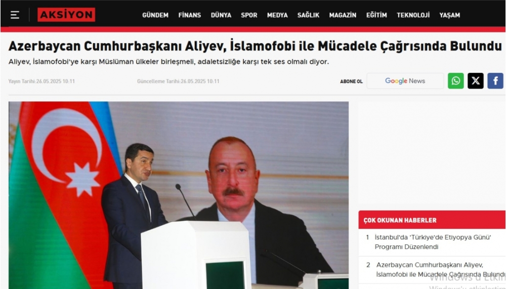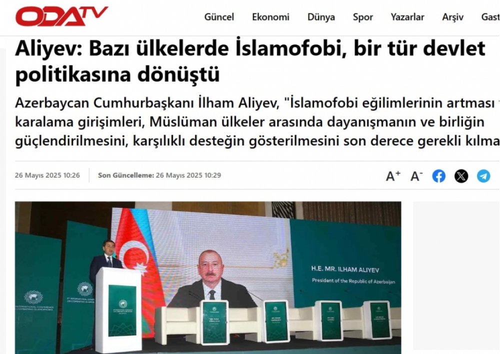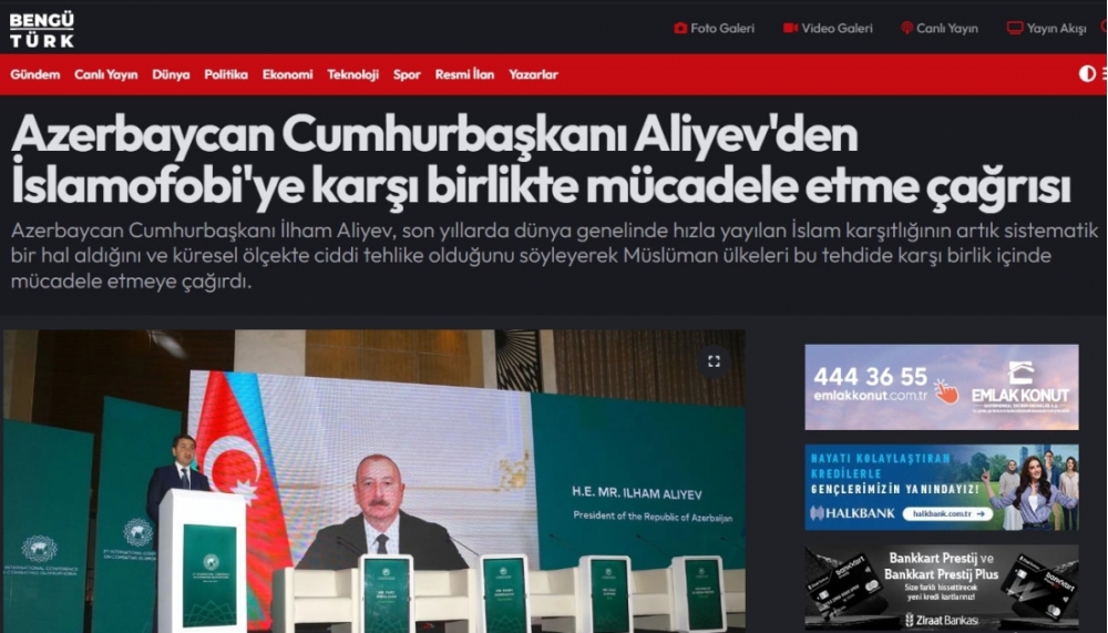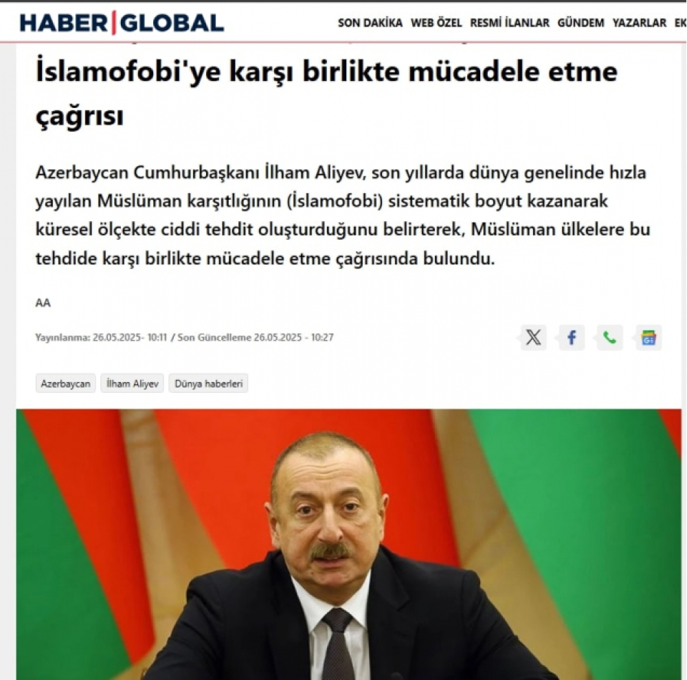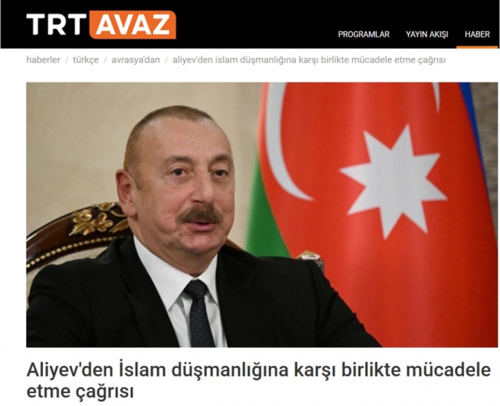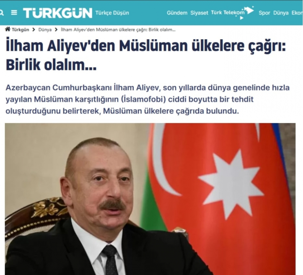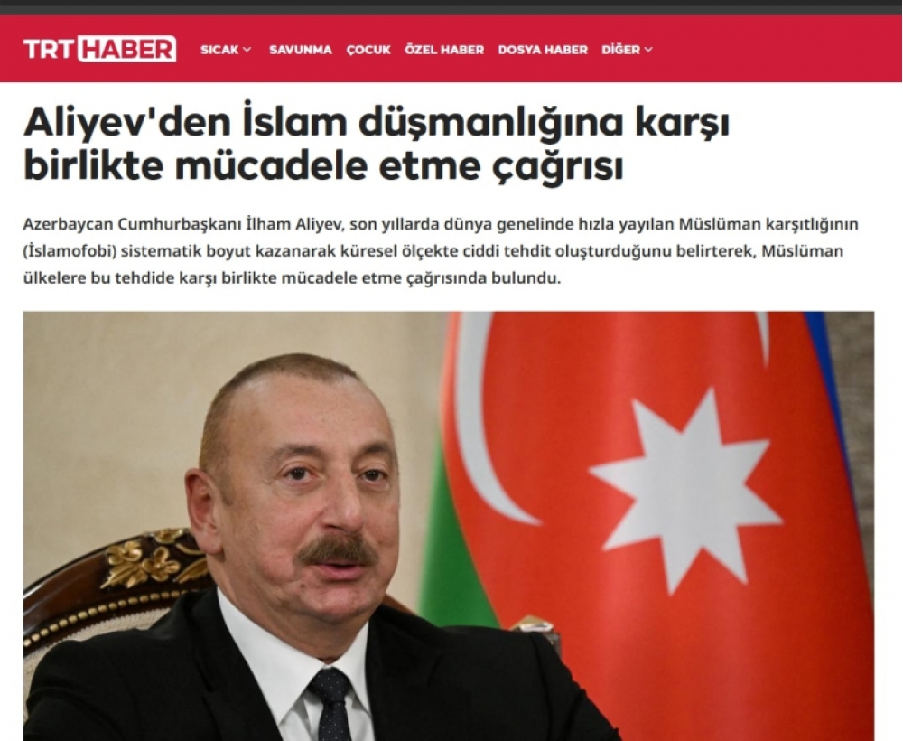 Türkiyə mediası: Prezident İlham Əliyev islamofobiya ilə mübarizədə səyləri birləşdirməyə çağırıb