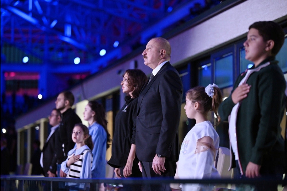Əvvəlcə Azərbaycan Respublikasının üçrəngli Bayrağı arenaya gətirilib və Dövlət Himnimizin sədaları altında ucaldılıb.
