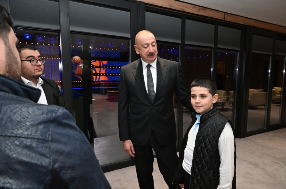 “İki sahil” xəbər verir ki, tədbirdən əvvəl Azərbaycan Respublikasının Prezidenti İlham Əliyev və birinci xanım Mehriban Əliyeva Vətən müharibəsi zamanı Gəncəyə raket hücumları nəticəsində valideynlərini, ailə üzvlərini və yaxın qohumlarını itirmiş, həmçinin xəsarət almış uşaqlarla görüşüblər.