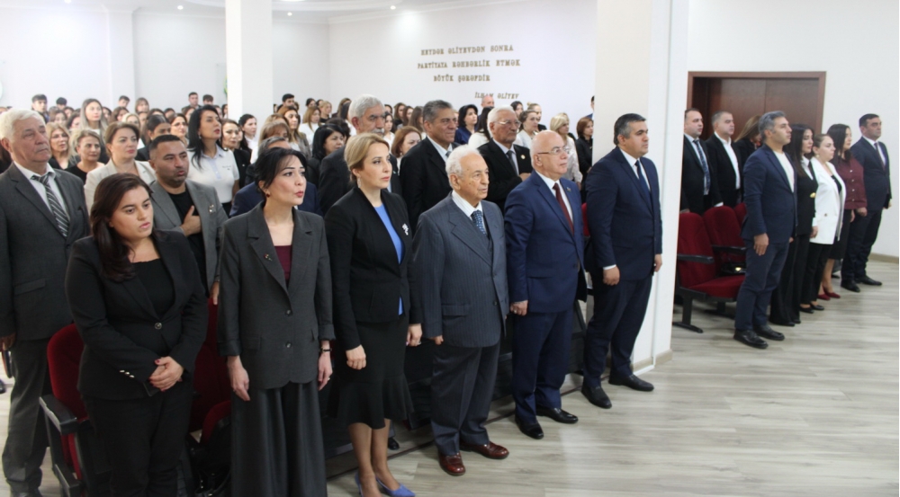 Azərbaycan Respublikasının Dövlət Himninin səslənməsi ilə başlayan tədbirdə Ulu Öndər Heydər Əliyevin, eləcə də ölkəmizin ərazi bütövlüyü və suverenliyi uğrunda canlarını qurban vermiş şəhidlərin, o cümlədən şəhid olmuş müəllimlərin əziz xatirəsi bir dəqiqəlik sükutla yad edilib.